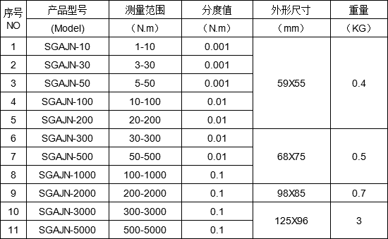 3.三种单位转换:N﹒m、kgf﹒cm、lbf﹒in(也有微小量程的mN﹒m 、gf﹒cm、mlbf﹒in);